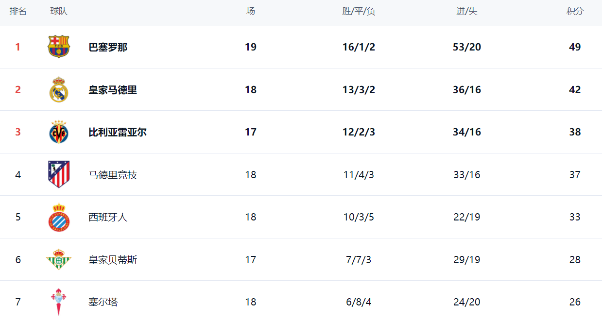 ในตารางลีก บาร์เซโลนาครองตำแหน่งจ่าฝูงด้วย 49 คะแนน จากการชนะ 16 นัด เสมอ 1 นัด และแพ้ 2 นัด เรอัล มาดริด อยู่ในอันดับสองด้วย 42 คะแนน ตามหลังบาร์เซโลนา 7 คะแนน โดยลงเล่นน้อยกว่า 1 นัด หลังจากชัยชนะของพวกเขา บียาร์เรอัลได้ขึ้นมาอยู่อันดับสามชั่วคราวด้วย 38 คะแนน ขณะที่แอตเลติโก มาดริด หล่นไปอยู่อันดับสี่ด้วย 37 คะแนนอันดับที่ห้าเป็นของเอสปันญอลด้วย 33 คะแนน เรอัล เบติส อยู่อันดับที่หกด้วย 28 คะแนน