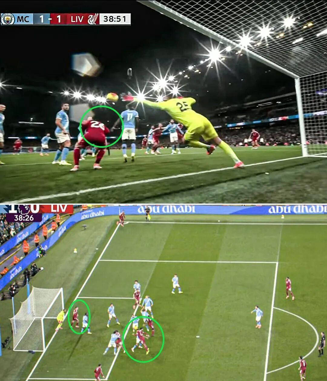 ฮาแลนด์โหม่งทำประตูในนาทีที่ 28 จากการเปิดของนูเนซ ส่งแมนเชสเตอร์ ซิตี้ ขึ้นนำ จากนั้นประตูของฟาน ไดค์ถูกยกเลิกโดย VAR เนื่องจากล้ำหน้า