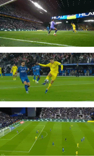 ผ่านไปเพียงยี่สิบนาที คูมันจ่ายบอลอย่างเสียสละและแม่นยำเข้าไปในกรอบเขตโทษ คริสเตียโน่ โรนัลโด้ตามเข้าไปยิงวอลเลย์จากจุดโทษ ส่งบอลเข้าไปตุงตาข่ายให้ อัล นาสร์ ขึ้นนำ ช่างเป็นการยิงที่ทรงพลังอะไรเช่นนี้! หลังจากทำประตูได้ โรนัลโด้วิ่งไปที่มุมธง หมุนตัว 180 องศาในอากาศ และฉลองด้วยท่า 'ซิอู' อันเป็นเอกลักษณ์ของเขา