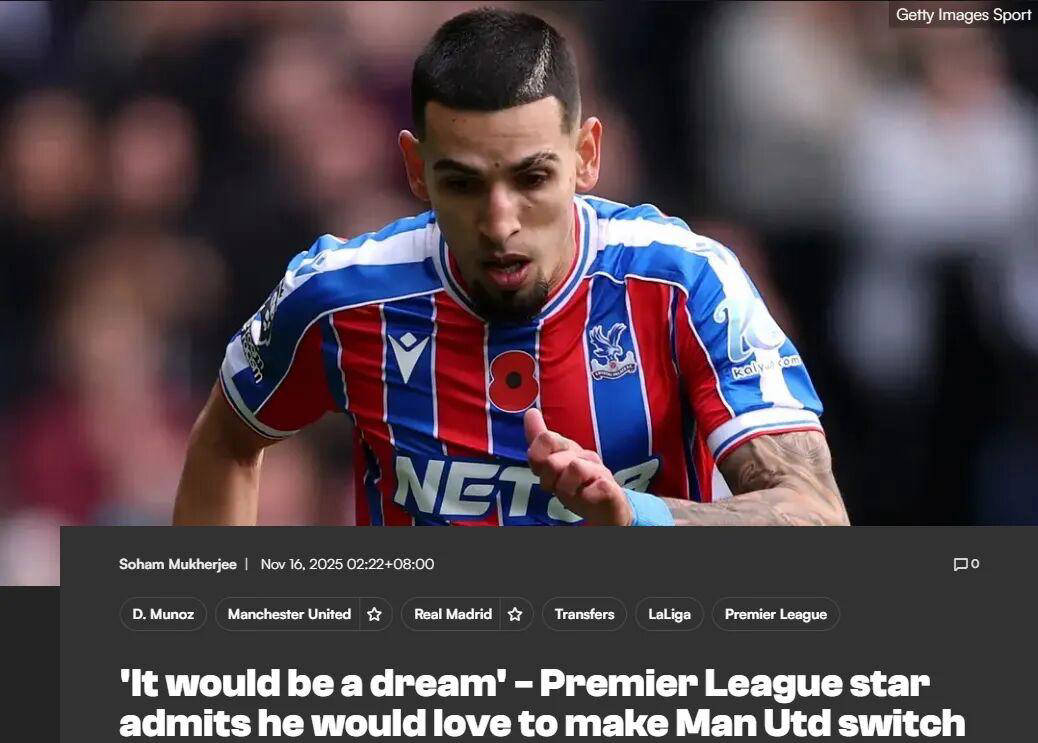 ขณะเดียวกัน ดาเนียล มูญอซ แบ็กซ้ายของคริสตัล พาเลซ ได้ยอมรับในสัมภาษณ์กับหนังสือพิมพ์ AS ของโคลอมเบียว่า เขาต้องการที่จะย้ายไปร่วมทีมใหญ่เช่นแมนเชสเตอร์ ยูไนเต็ด เขาได้กล่าวว่า: "ข่าวลือที่เชื่อมโยงผมกับทีมอื่น ๆ นั้นแพร่หลายมาก หากได้รับโอกาส ผมฝันที่จะได้เล่นให้กับทีมใด ๆ ก็ตาม – บาร์เซโลนา, ปารีส แซงต์-แชร์กแมง, เรอัล มาดริด หรือแมนเชสเตอร์ ยูไนเต็ด นั่นคือเป้าหมายที่ผมกำลังมุ่งมั่นไปให้ถึง และทุกวันผมหวังว่าจะสามารถดึงดูดความสนใจของสโมสรเหล่านี้ได้"อย่างไรก็ตาม ตอนนี้ผมมุ่งเน้นไปที่การเล่นให้ดีให้กับคริสตัล พาเลซ ผมยังไม่ได้รับข้อมูลที่เป็นรูปธรรมเกี่ยวกับความสนใจจากสโมสรเหล่านี้ ดังนั้นเราต้องรอดูกันต่อไปเมื่อตลาดซื้อขายนักเตะช่วงฤดูหนาวใกล้เข้ามา