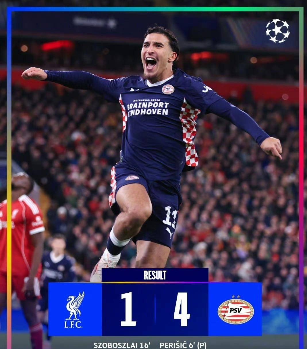 แมนเชสเตอร์ ซิตี้ หล่นไปอยู่อันดับที่เก้าด้วยคะแนน 10 แต้ม หลังจากพ่ายแพ้ในแชมเปียนส์ลีกเป็นครั้งแรกในฤดูกาลนี้; ลิเวอร์พูลตกไปอยู่อันดับที่ 13 หลังจากพ่ายแพ้ 4-1; ท็อตแน่ม ฮ็อตสเปอร์ ซึ่งพ่ายแพ้ต่อปารีส แซงต์-แชร์กแมง บันทึกความพ่ายแพ้ครั้งแรกของพวกเขาและอยู่อันดับที่ 16 ด้วยคะแนน 8 แต้ม; บาร์เซโลนาอยู่อันดับที่ 18 ด้วยคะแนน 7 แต้ม; ยูเวนตุสอยู่อันดับที่ 22.